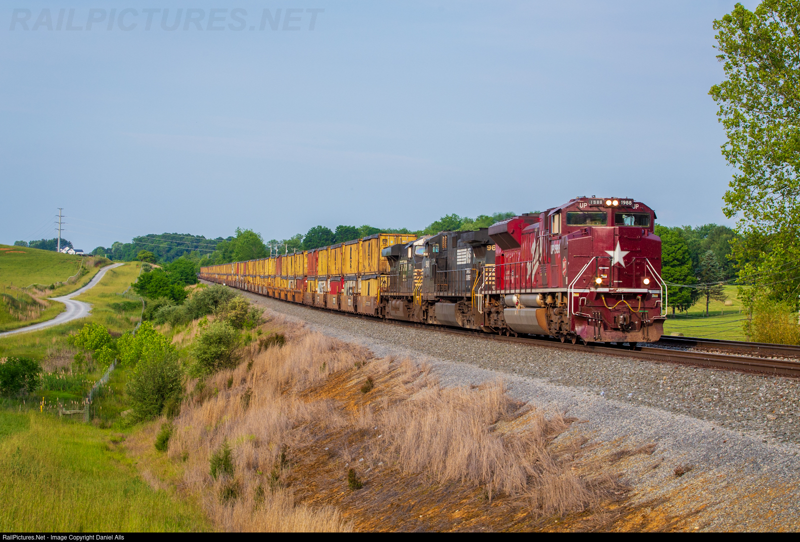| 13Z comes up to control point Washington in Emory, VA with UP 1988 in the lead. Here the crew will stop and tie the train down. |