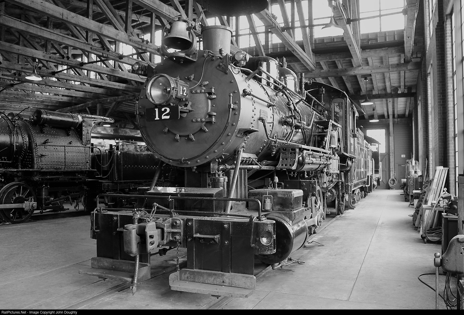 | Morehead & North Fork 12 sits inside the Age of Steam Railroad Museum roundhouse in Sugar Creek, Ohio. There is quite a impressive number of steam locomotives located at this museum, well worth a visit. |
