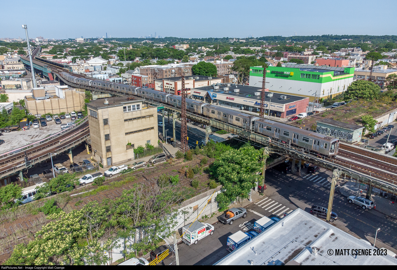 Crossings and Connections. A New York City Transit Authority (NYCTA) A train to Ozone Park-Lefferts Blvd, led by R179 car no. 3257 (Bombardier, 2016-2019), is seen crossing the former Long Island Rail Road (LIRR) Rockaway Beach Branch as it makes its way between Rockaway Blvd and 104th St Stations on the IND Liberty Avenue Line. The branch formerly ran from Whitepot Junction on the LIRR Main Line to Rockaway Park on the now IND Rockaway Line, with a connection at Hammels Wye to the Far Rockaway Branch allowing services to loop and continue back to Manhattan. A fire destroyed much of the trestle over Jamaica Bay and shortly thereafter the railroad opted to abandon the branch instead of rehabilitating the trestle. The City of New York purchased the section from here south in order to expand the subway to the far-flung Rockaway Peninsula. Plans have long called for reactivation of the branch north of here, offering subway service from northwest Queens to JFK Airport and the Rockaways, but as yet none of these have come to fruition.