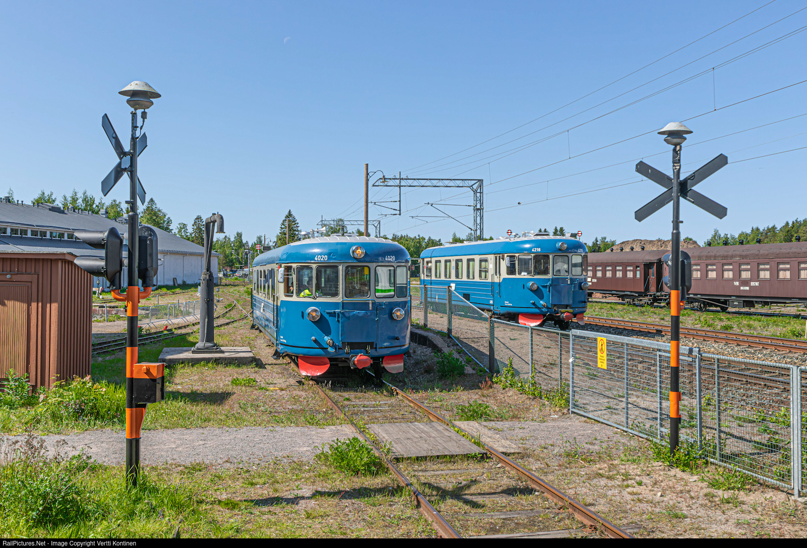 A beautiful moment at the Finnish railway museum! The first ever Dm7 railbus 4020 met the last Dm7 to roll out of production (4216) at Hyvinkää when 4216 stopped for a few hours with a charter train full of railway enthusiasts from Sweden to visit the museum before continuing to Karjaa to drop off the swedes for their final leg to Turku port on a VR train.