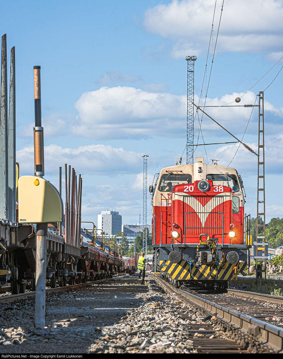| The empty heritage train of Haapamäki museum locomotive society has stopped at the Tampere Viinikka yard for fueling. After the fueling the locomotives came back and gave a nice pose against the skyline of Tampere city and next to the details that the yard offeres. |