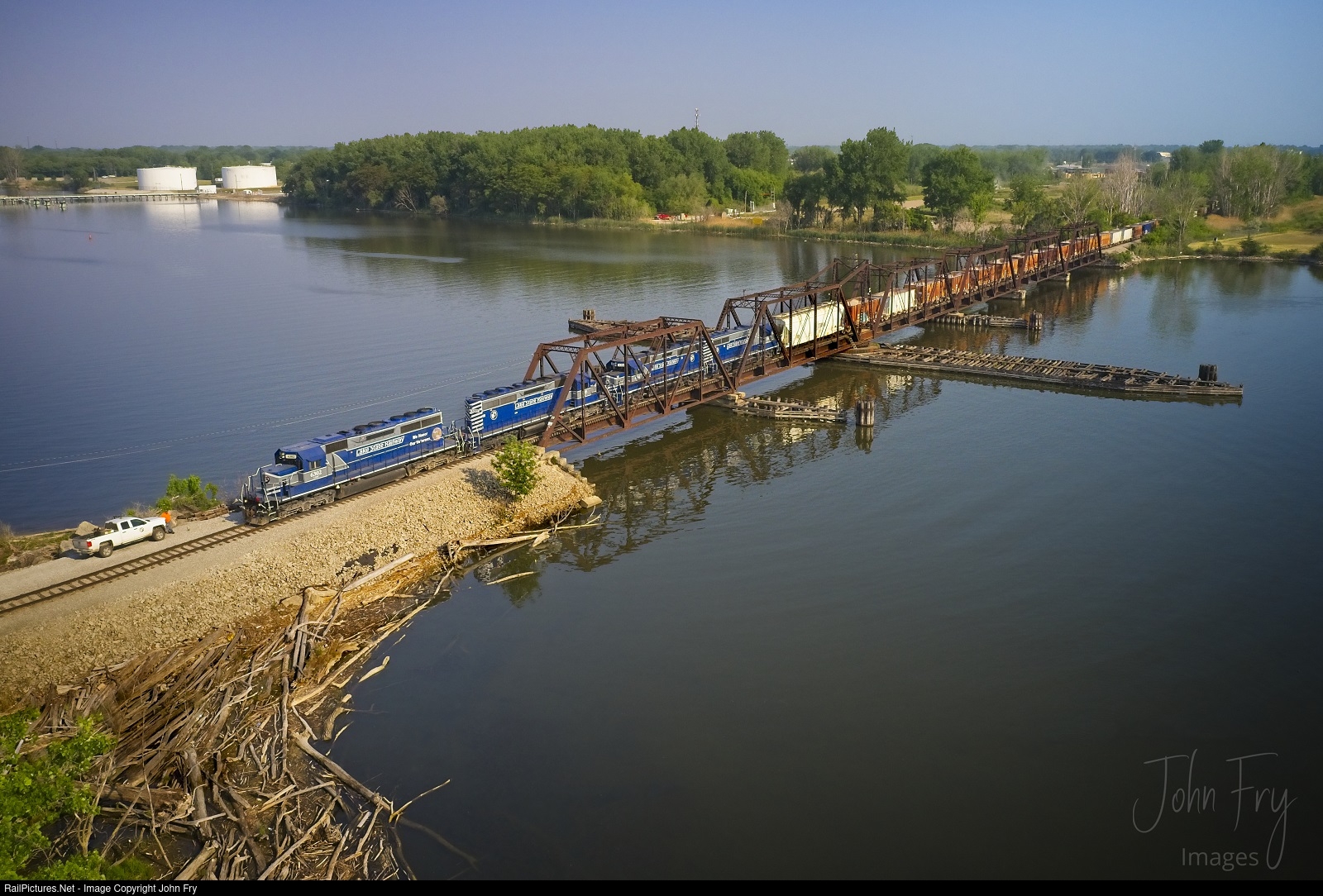 Lake States train 126(with the specially labeled honoring the troops loco leading) shoves its train across the Saginaw River to access their small yard on the northside of town.