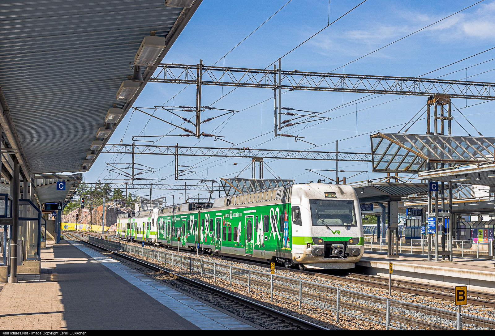 | Commuter train from Lahti arrives at its second last stop which is the modern station of Pasila. After that, the journey will continue for about a mile and then the train shall stop at the Helsinki Central railwaystation. |