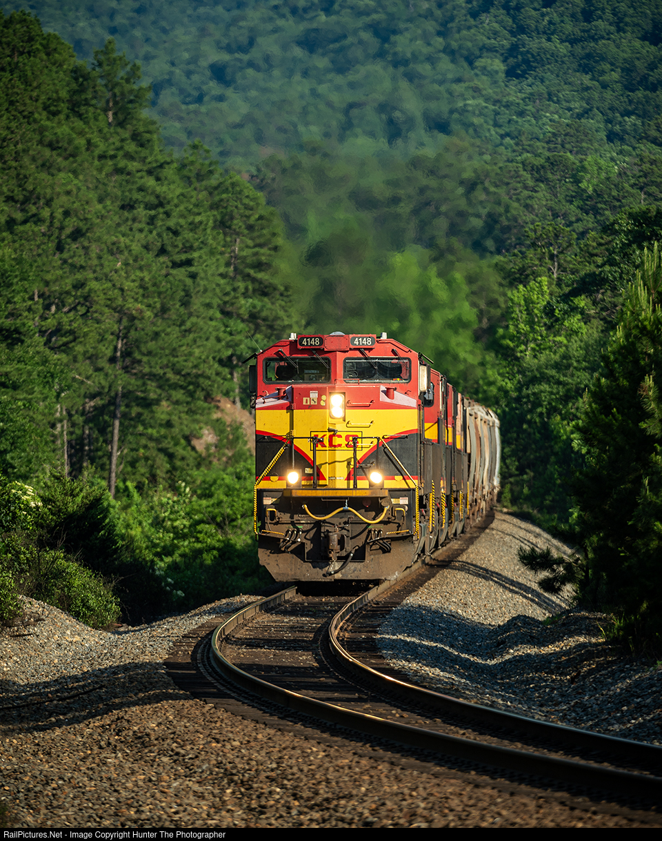 | High Heat On The Mountain | A hot Saturday, June 24, 2023 afternoon sees a northbound train of empty grain hoppers churning out even more heat as it climbs the eastern (timetable southern) slope of the Rich Mountain grade near the community of Eagleton, AR. |