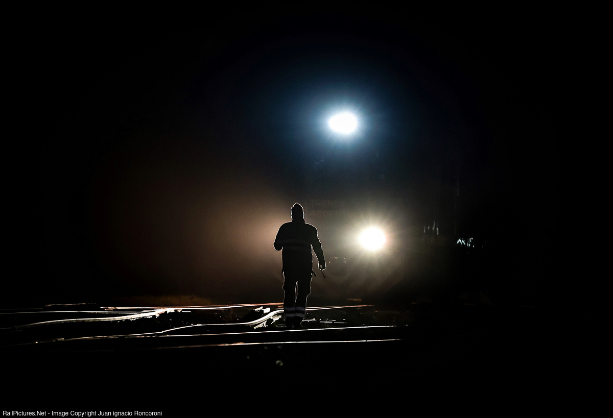 a railway employee makes a change of tracks at night in the town of Empalme Villa Constitucion