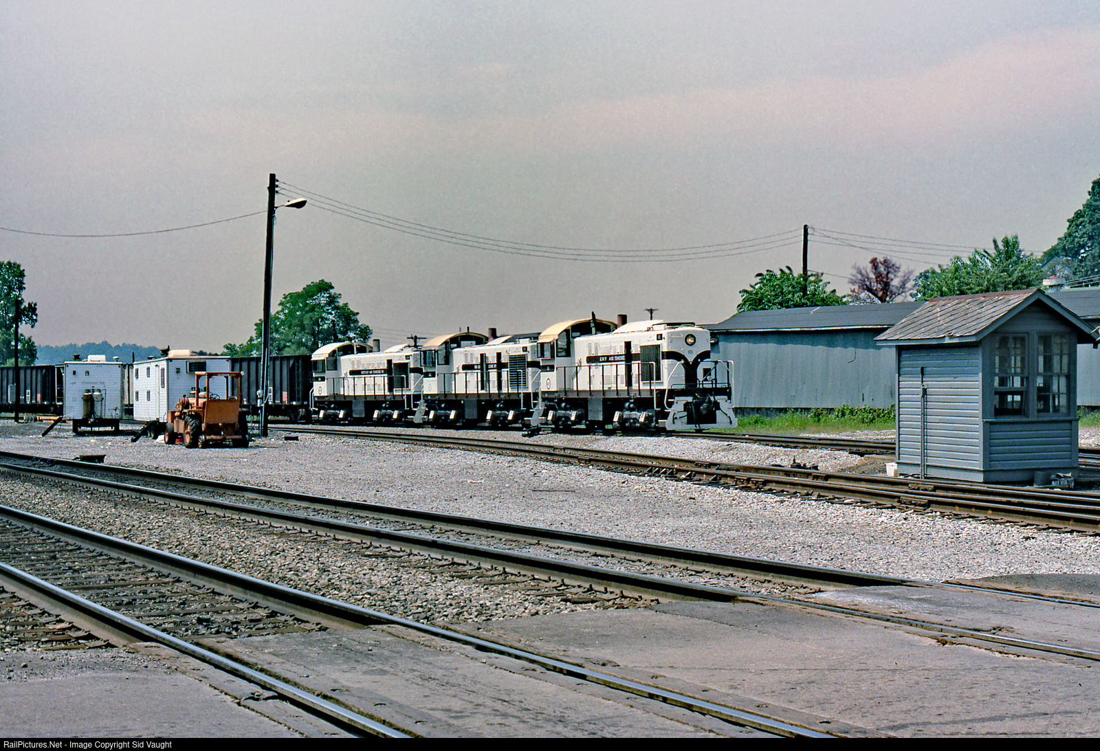 K&T's facility in the tiny town sits hard by the CNO&TP main. Here we see the main, the scale house, NS maintenance of way trailers and the entire roster or ex-DRGW Alcos. In the seventies there was also an ex-NKP S-2 on the property, presumably "parts of the hoof". Photo by Jim Satterwhite From my collection.