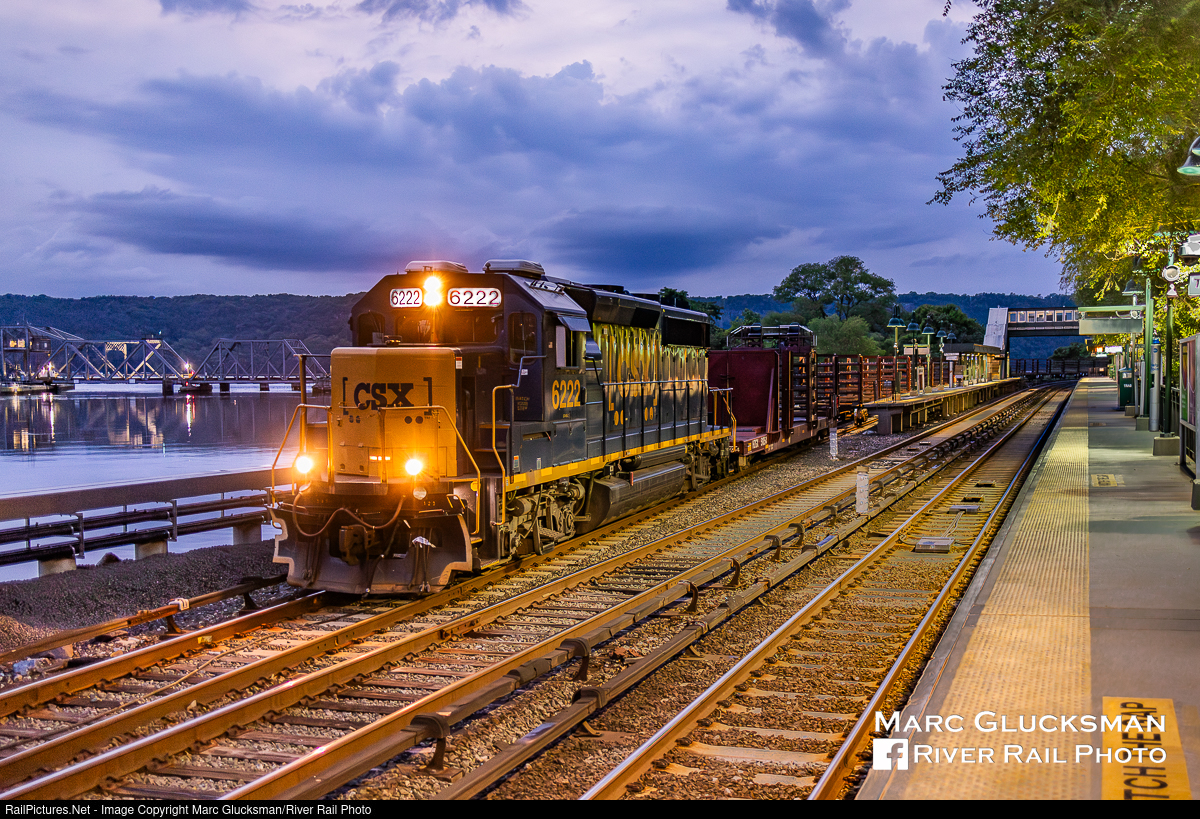 Rail Train Out. On the evening of Monday, June 26, 2023, CSX Y220-26 with CSXT 6222 (née-BO 4323, GP40-2, EMD, 9/1979) was dispatched to Croton Harmon to pick up the now empty continuously welded rail train MTA Metro-North Railroad. At about 20 minutes after sunset, it passed through the Metro-North Spuyten Duyvil Station on the way to the CSX Oak Point Yard. The well timed departure of M704-26 allowed the trains to meet on the road, and neither train had to hold. In general CSX only moves through this are under the cover of darkness, so even this twilight move was a good catch, but especially with a solo 4-axle unit.