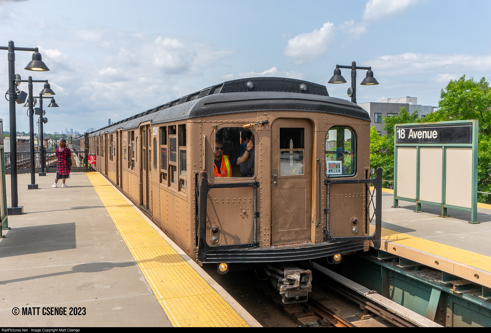 BMT Birthday Bash. New York City Transit Authority (NYCTA) AB Standard no. 2390 (ACF, 1914-1919) is the lead motor on a mixed train of Standards and R1-9 "Arnines" seen at 18th Avenue Station on the IND Culver Line. The train had been running a special NY Transit Museum nostalgia ride celebrating the 100th Anniversary of the founding of the Brooklyn-Manhattan Transit Corporation on June 15, 1923, and at this point was preparing to head back to Coney Island Yard.