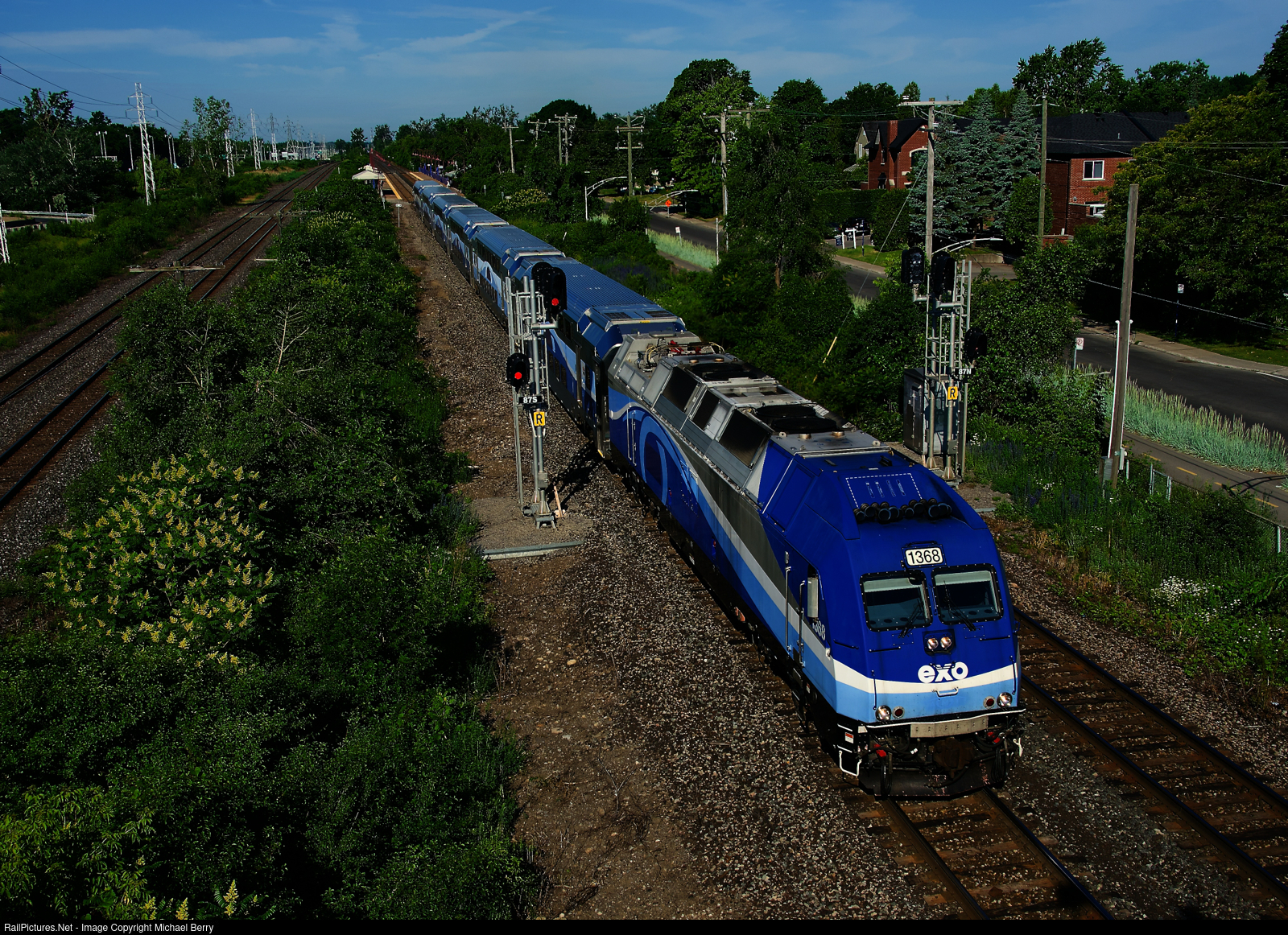 EXO 20 from Vaudreuil has just left Cedar Park Station with EXO 1368 and six multilevel cars.
