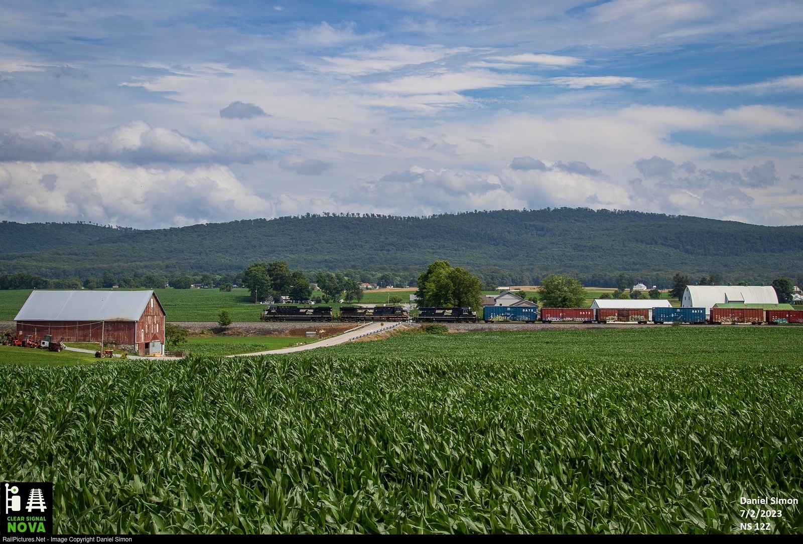 The rumble of a passing freight interrupts the silence in the crop fields along the Norfolk Southern Lurgan Branch.