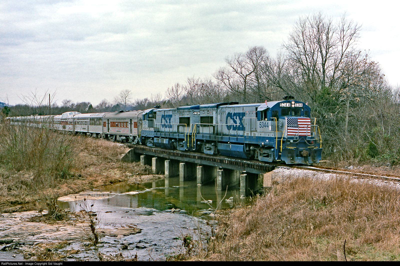 Seemed appropriate considering today's date but seemed an inappropriate time for an excursion crossing the chilly and a leafless terrain of middle Tennessee behind two former C&O workhorses. Fortunately they got several more years out of these attractive units. I like that former-SAL "poor man's dome". Photo by Jim Satterwhite, from my collection. Happy July 4th!