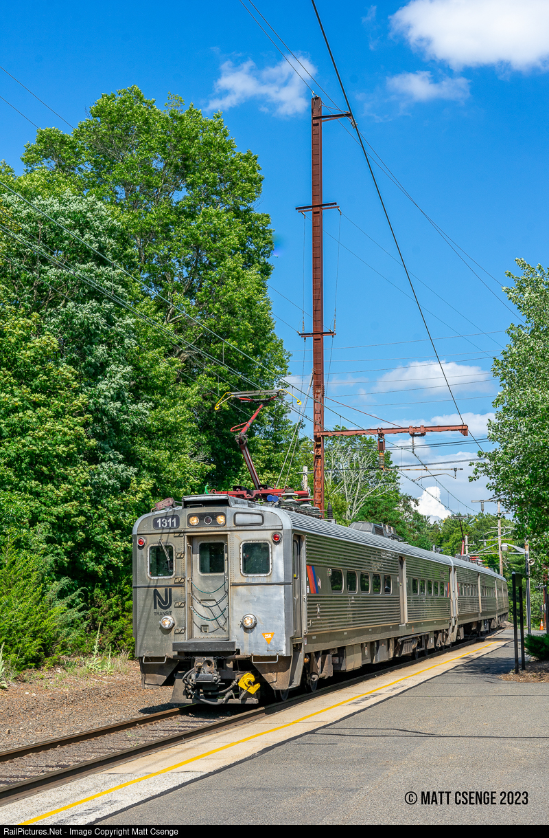 NJ Transit Arrow III no. 1311 (GE, 1977-1978) is seen leading three-car Gladstone Branch train 423 into Far Hills Station. |