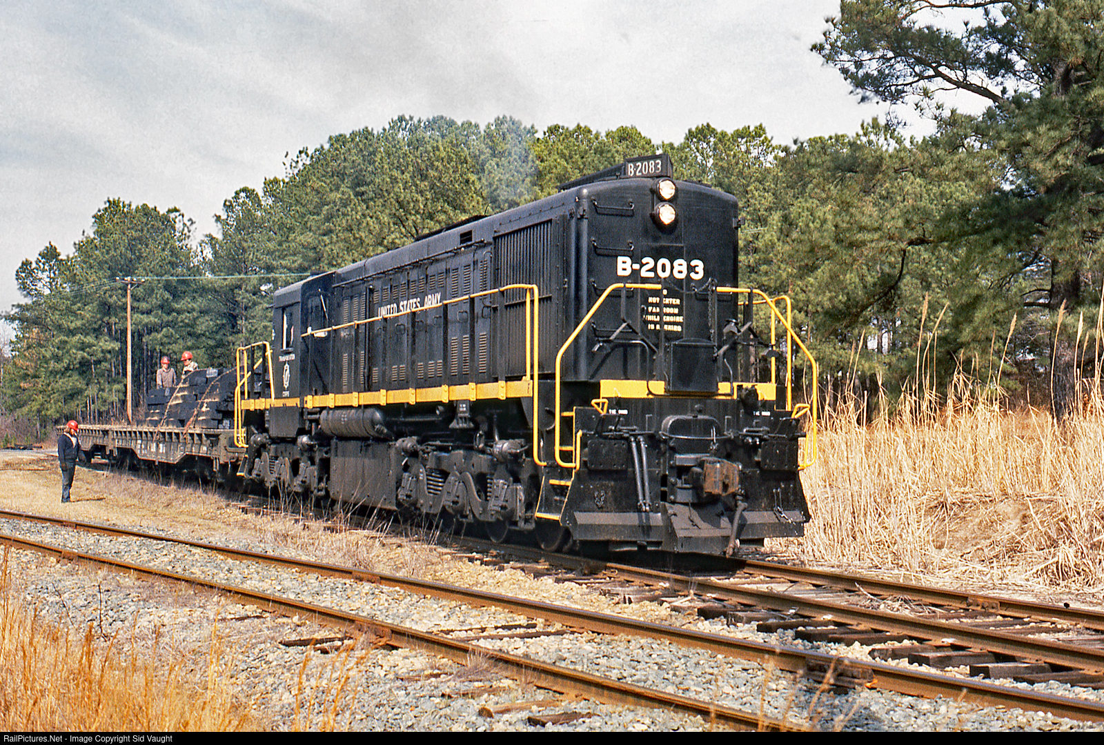 This railroad serves Ft. Liberty (formerly Bragg) for the most part using Army locomotives. In 1985 their main traffic was fuel for Pope AFB, at the north end of the line. Looks like they are getting ready to replace some ties on this date. Photo by Jim Satterwhite, from my collection.