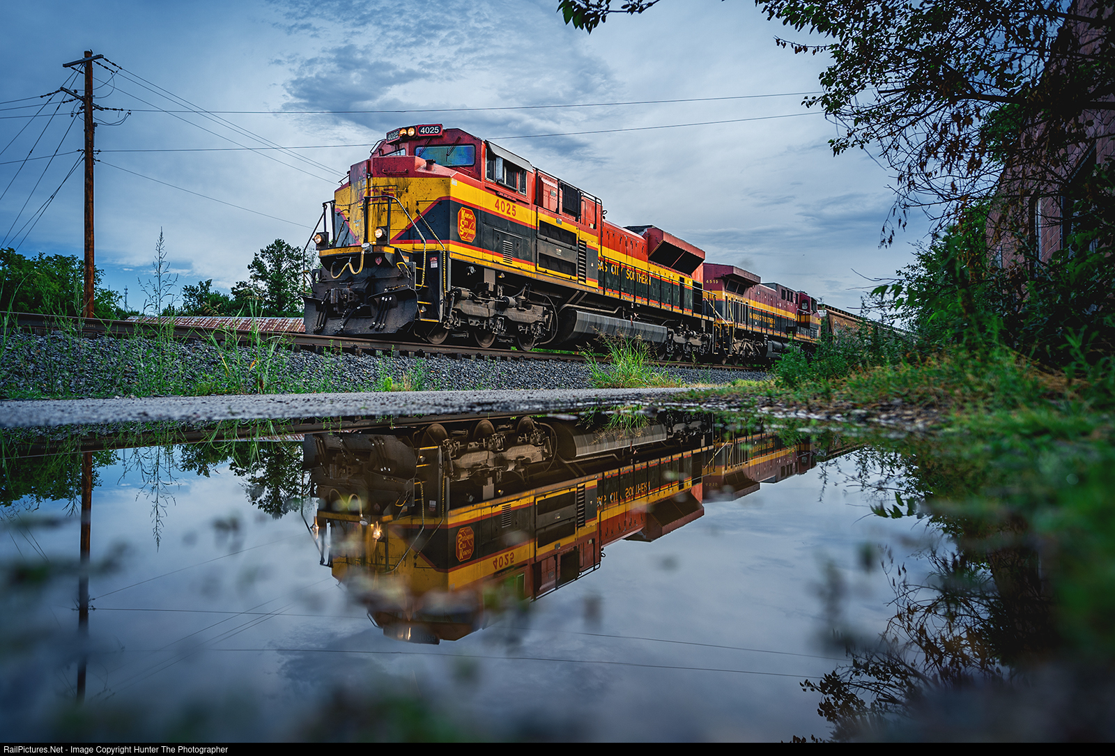 Morning After The Rain | The sky is clearing up over Noel, MO as southbound CPKC manifest train M262 cruises through the middle of town on the morning of Saturday, July 8, 2023.
