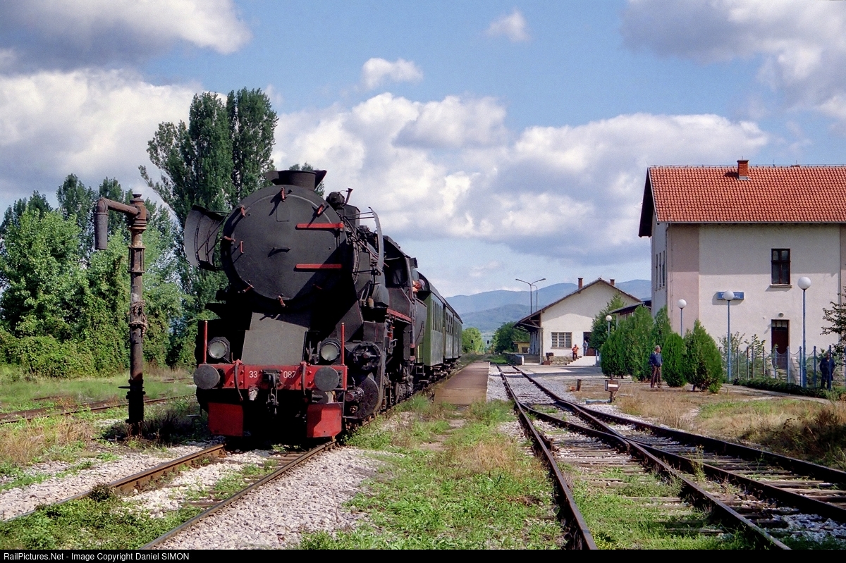 33-087 hauling a passenger train to Nis is making a brief halt at a little station in eastern Serbia.