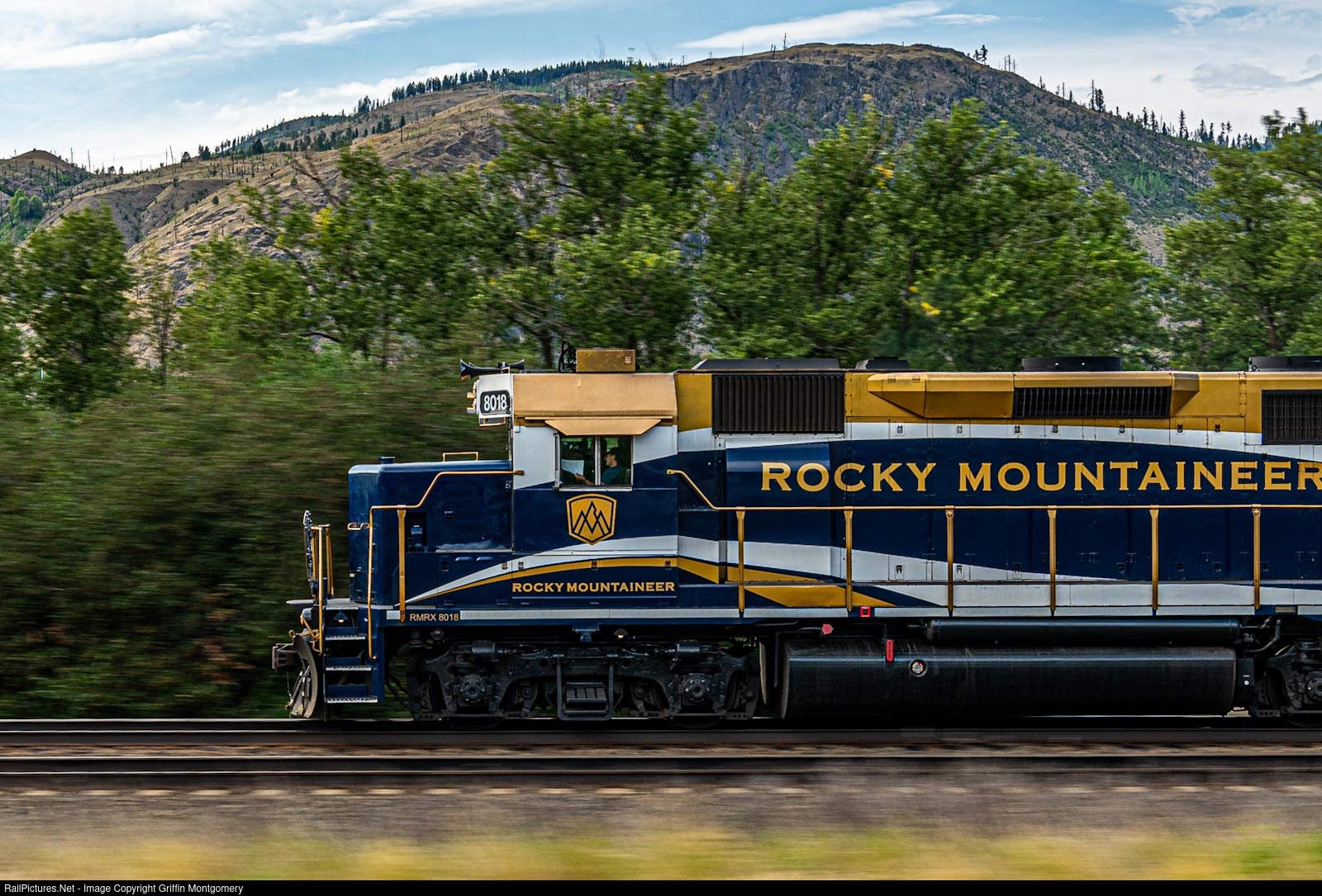 RailPictures.Net Photo: RMRX 8018 Rocky Mountaineer Railtours EMD GP40-2R at Pritchard , British Columbia, Canada by Griffin Montgomery