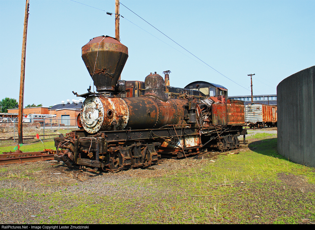 | Stored behind the roundhouse at Steamtown with several other steam and diesel locomotives is a Two truck Shay.
