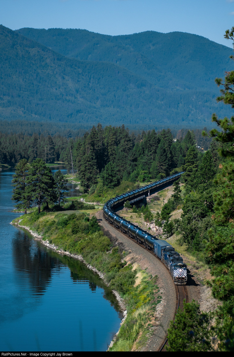 With a lengthy train for Missoula, MRLs morning Gas train skates along the Clark Fork river in some beautiful summer sunlight.