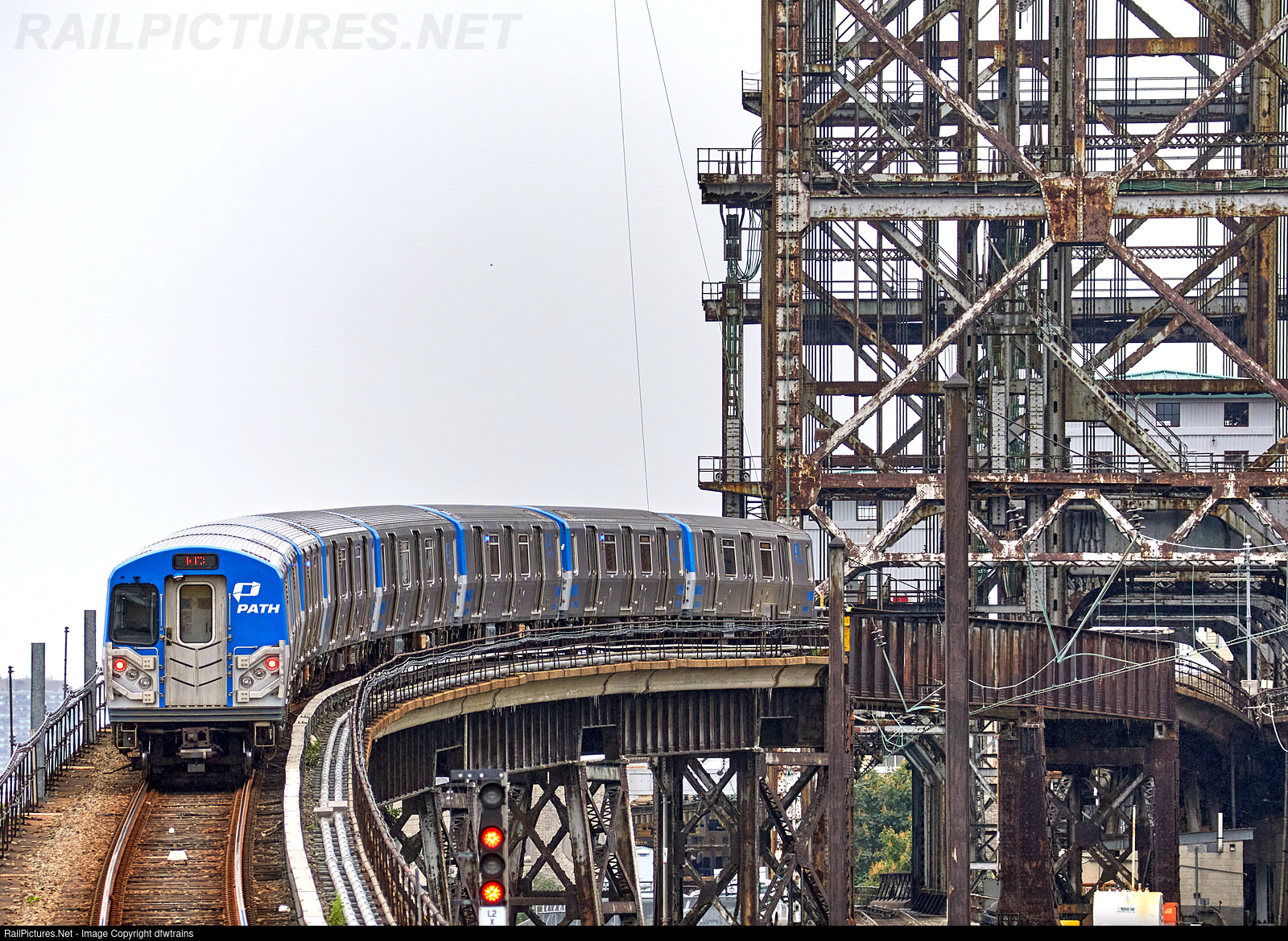 Path train to Newark Penn Station gets on the Amtrak dock tower at Harrison to cross over Passaic river
