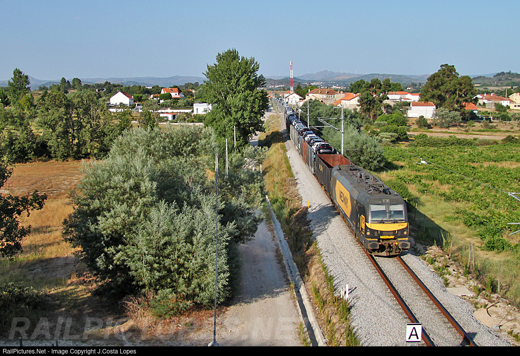 A Medway freight train from Vilar Formoso to Praias do Sado with about 200 SEAT cars.