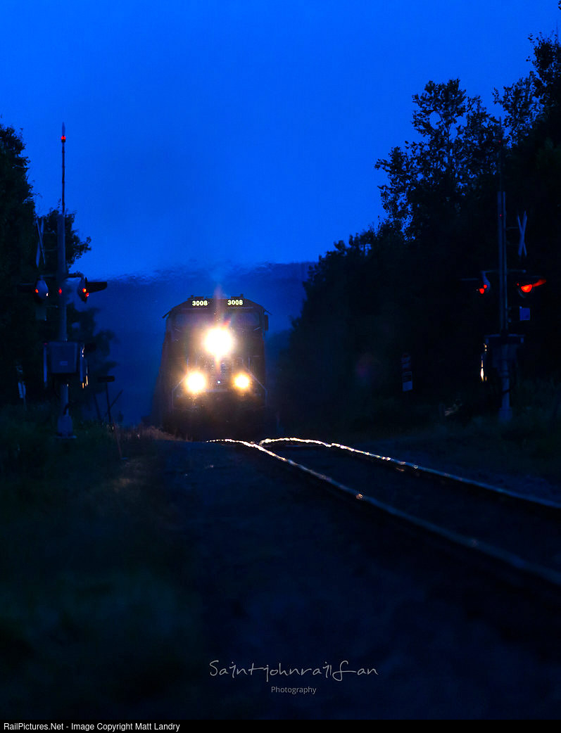 CN 3008 approaches Penobsquis, New Brunswick after sunset, with blue hour kicking in.