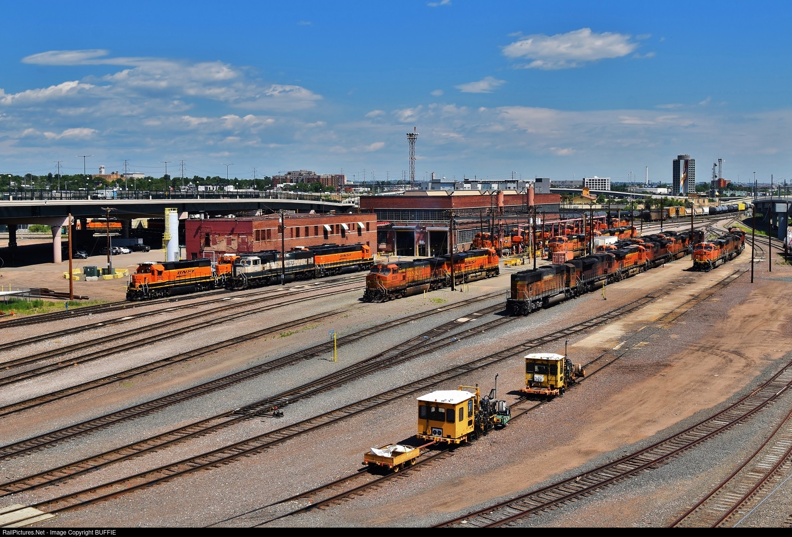 MOW equipment joins other BNSF motors in the engine servicing facility in Denver, Colorado.