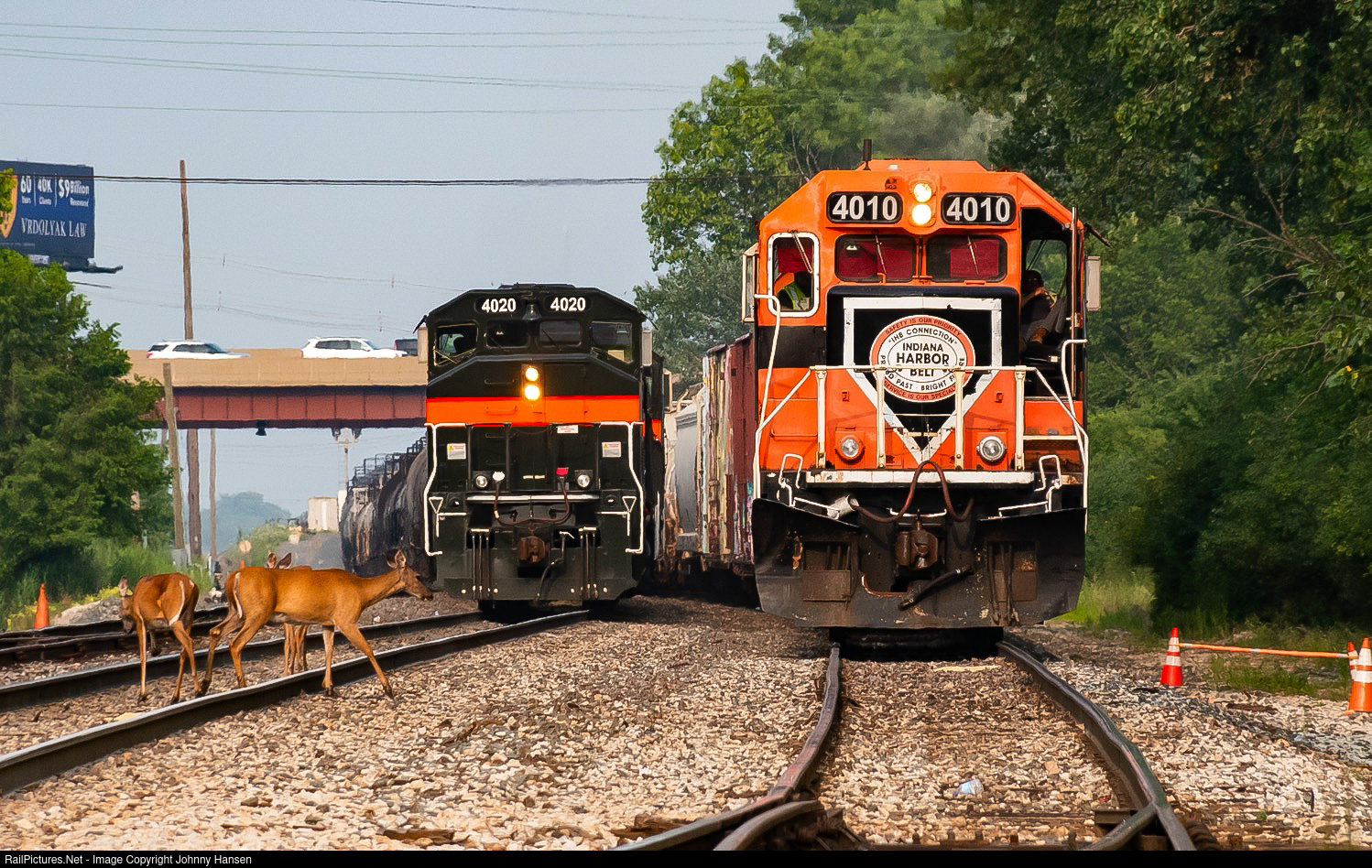 Oh Deer! The Blue Island Yard hump with IHB GP40-2LW 4020 shoves back cars while a family of deer begin to cross the tracks. BP2 is getting ready to depart on the right with IHB GP40P-2 4010 and a regular GP40-2. 4010 was one of three GP40P-2’s built for Southern Pacific passenger service. The last two GP40P’s remain on Union Pacific’s roster today.