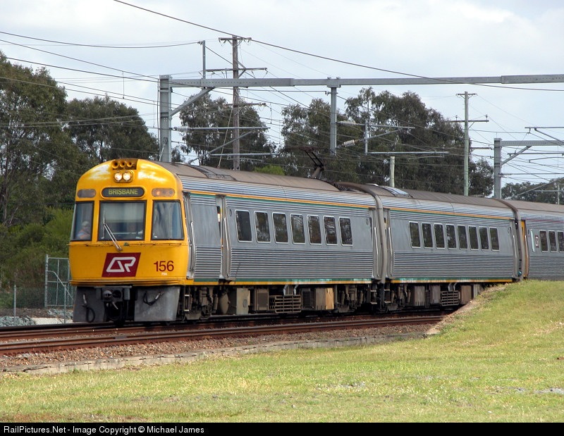 InterCity Express 156/154 passes through Strathpine on the Northern Line - ICE 151, 153 & 156 wait in line for their turn as QRs InterCity Express Fleet is currently undergoing refurbishment at their birthplace, EDI/Walkers in Maryborough