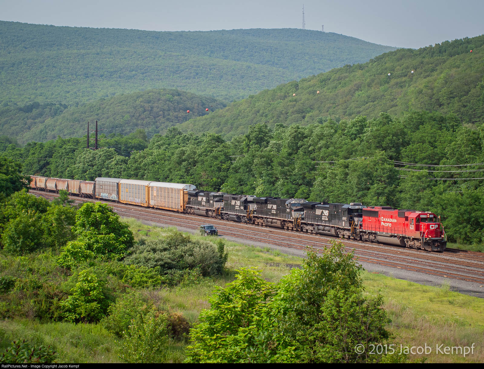 For many decades, the Borough of Lehighton, PA had long considered itself a railroad town. Founded in 1746 by the Moravian Brethren, the town saw significant growth with the arrival of the Lehigh Valley Railroad, nicknamed the 'Route of the Black Diamond' due to the amount of hard, anthracite coal it carried along its route. Additionally, the Central Railroad of New Jersey boasted trackage through town, paralleling the Lehigh Valley on the opposite side of the Lehigh River on its run north from Allentown through the Lehigh Gorge. By the early 1970s, CNJ had ended all operations in Pennsylvania after coal traffic dried up and by 1976, both CNJ and LV were assumed under Conrail. The Lehigh Valley main was abandoned between Allentown and Lehighton with Conrail favoring the CNJ side of the river until reaching the yard at Lehighton. Conrail sold the northern portion of its Lehigh Line to the Reading & Northern in the mid-1990s before Norfolk Southern assumed control in 1999. Today, Lehighton is but a shell of its former self. The yard is used as a small interchange between R&N and NS and at times between the locals from Hazelton and Allentown. Eastbound Buffalo to Allentown train 13T eases through the yard limits on a summer afternoon. 13T became 36T after the D&H acquisition about two months after this photo was taken. By 2020, through traffic on this portion of the Lehigh Line was gone.