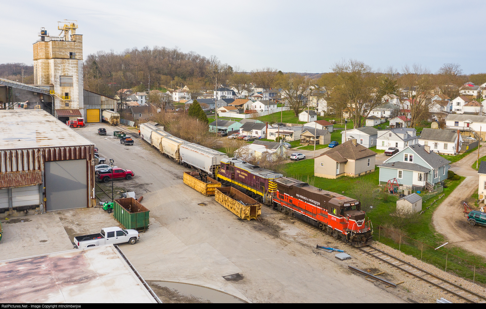 | The Ohio Central's ZVL-2 job completes its shove up the branch off of the OSRR Line and is arriving at the Owens-Illinois Glass plant in Zanesville, Ohio with 4 covered hoppers to spot. A pair of GE B23 Super 7's power this local as it makes its first customer spot of the evening. |