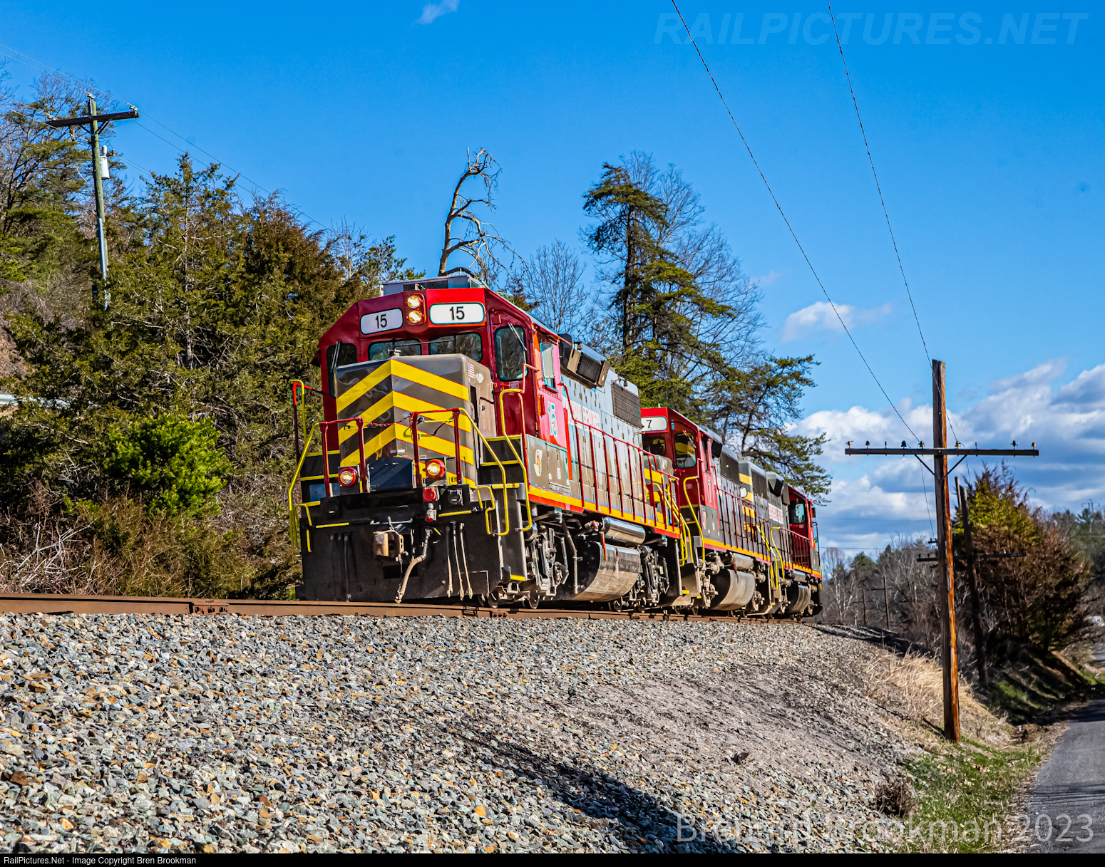 Buckingham Branch's Clifton Forge turn Z631 with a former NS GP38-2 fresh out of the shop from getting a nose trim along with being redone in the colors of the Buckingham Branch livery, BB 15 rolls west leading the trio of units into Goshen, Va where they'll pick up cars they left in the hole the day before and then continue west to Clifton Forge where they'll pick up and drop off interchange traffic with CSX and then roll east back to Staunton.