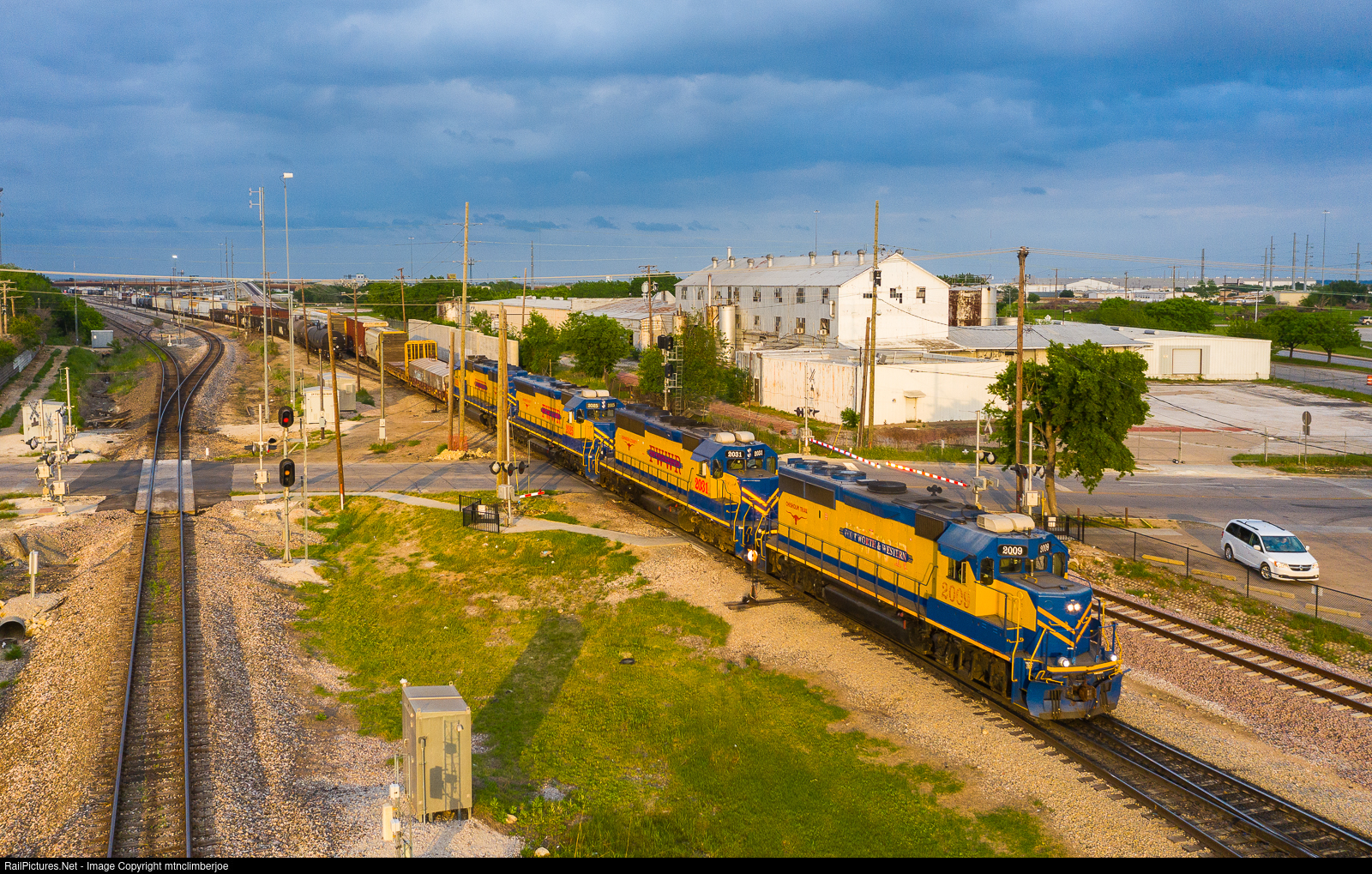 With afternoon rainstorms breaking up, the setting sun casts a twenty second long golden glow across Fort Worth, Texas as it finds a small opening amongst the storm clouds. A quartet of EMD's are hard at work on a yard job working the west end of the Fort Worth & Western's yard north of Fort Worth.