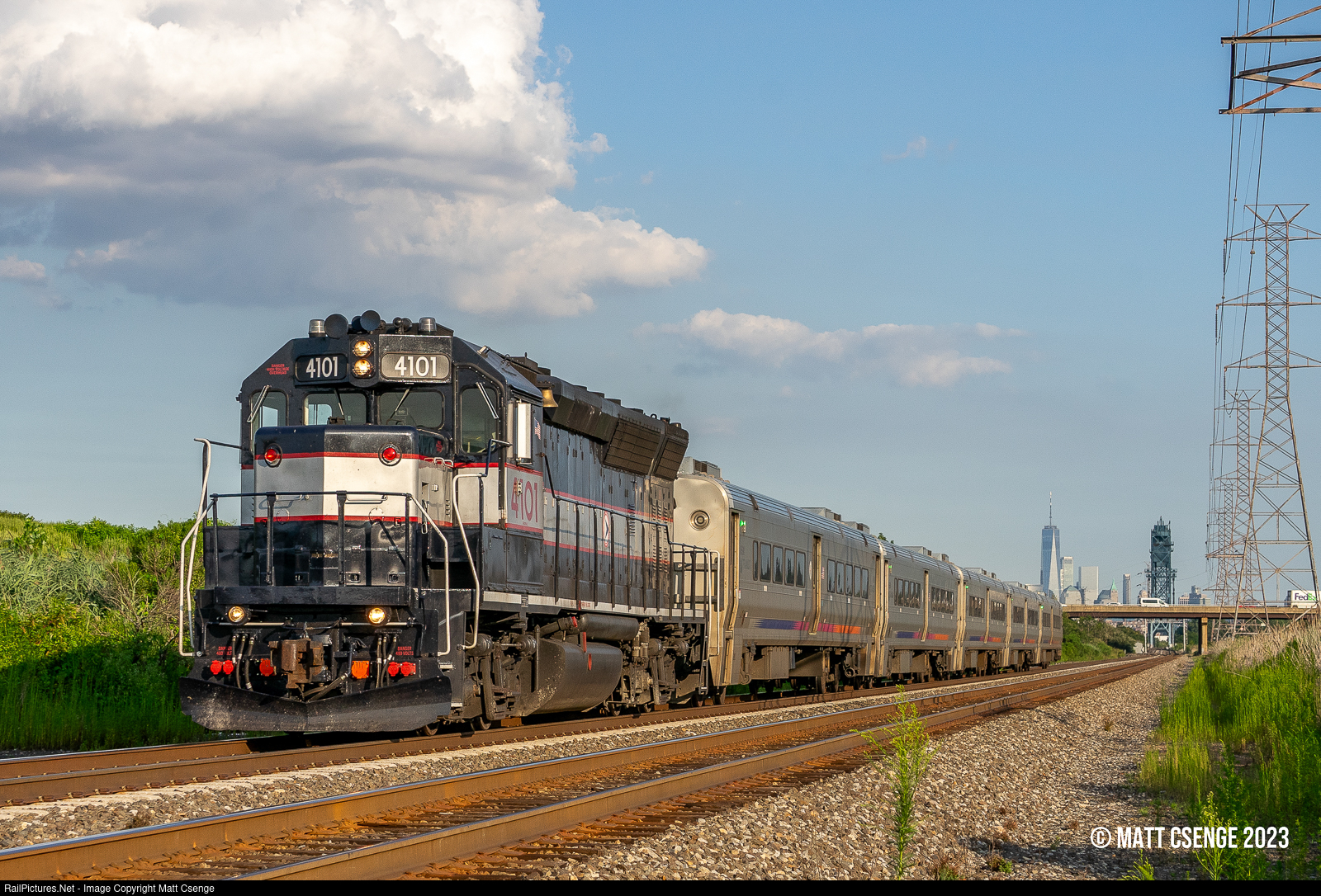 NJ Transit GP40PH-2 no. 4101 (EMD, 1968) is seen in its NJDOT heritage scheme leading Main Line train 1225 through the Jersey Meadows, bound for Waldwick. |