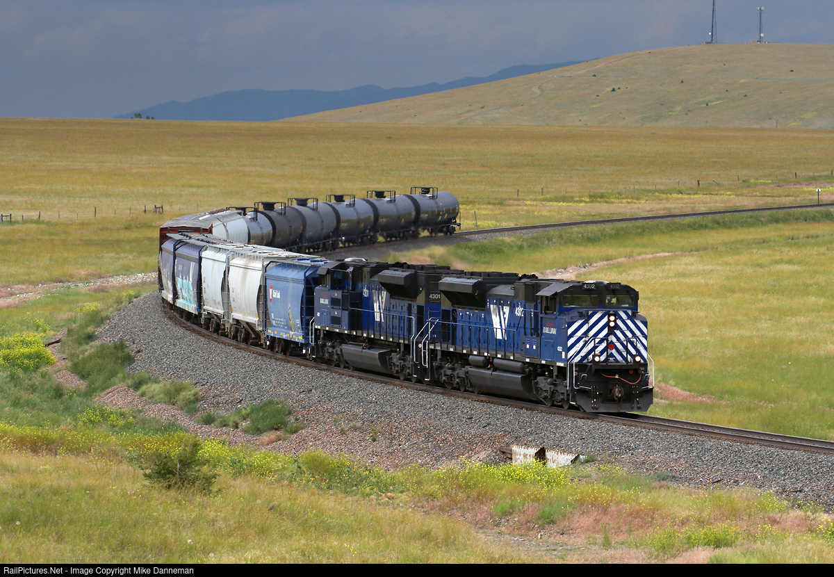 With the collapse of Montana Rail Link’s Yellowstone River Bridge near Reed Point under the weight of MLAUMIS on June 24, 2023, and the subsequent severing of a busy main line, MRL and BNSF had to scramble to accommodate and reroute all the tonnage for as long as it took to rebuild the bridge. BNSF sent its overhead tonnage to different lines during the closure, but MRL continued to run its locals, as well as operating a series of daily trains over the western portion of the railroad to shuttle cars and serve its on line customers. On July 6, 2023, MRL EMD SD70ACe Nos. 4302 and 4301 power a Helena to Bozeman turn dropping downgrade out of Winston, Montana.