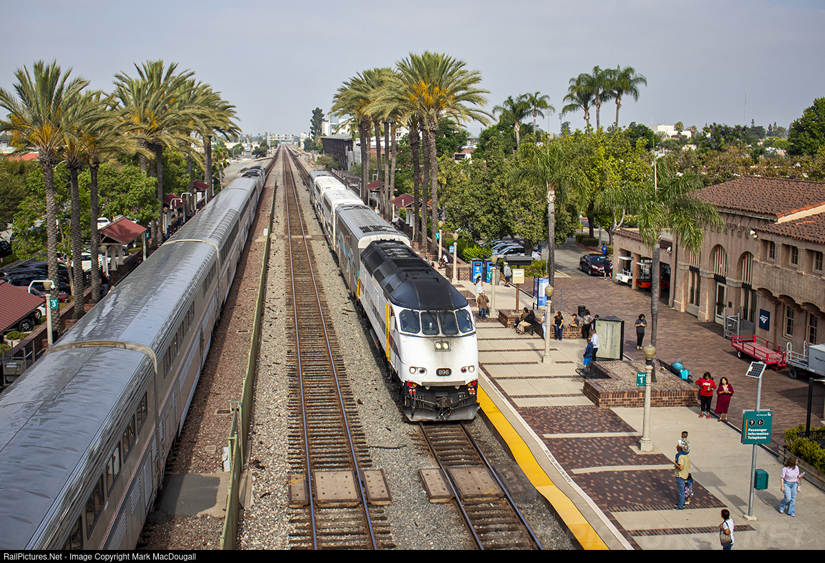 Amtrak Southwest Chief train #3 and Metrolink 660 for Oceanside each service the station at Fullerton.