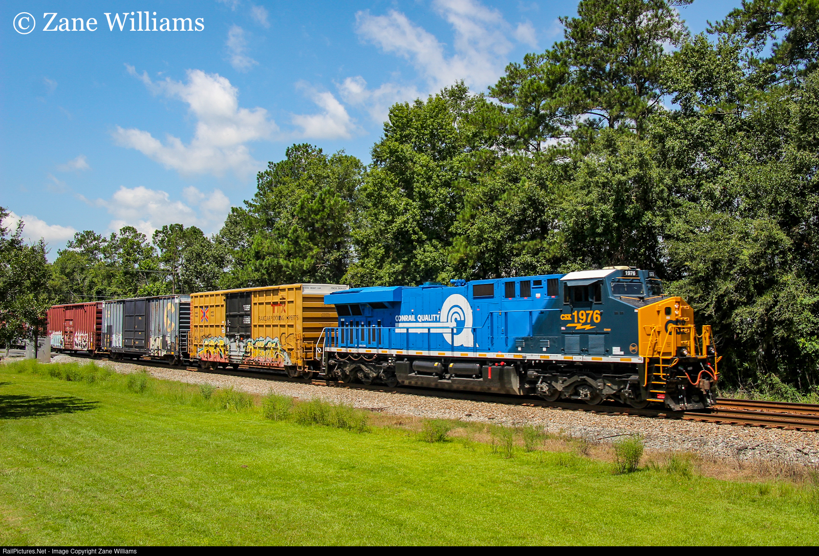 | Heading northbound on the A Line through the city of Richmond Hill, CSX M410 heads towards Savannah, Georgia with CSX 1976 (the Conrail Heritage Unit) leading the train this afternoon |