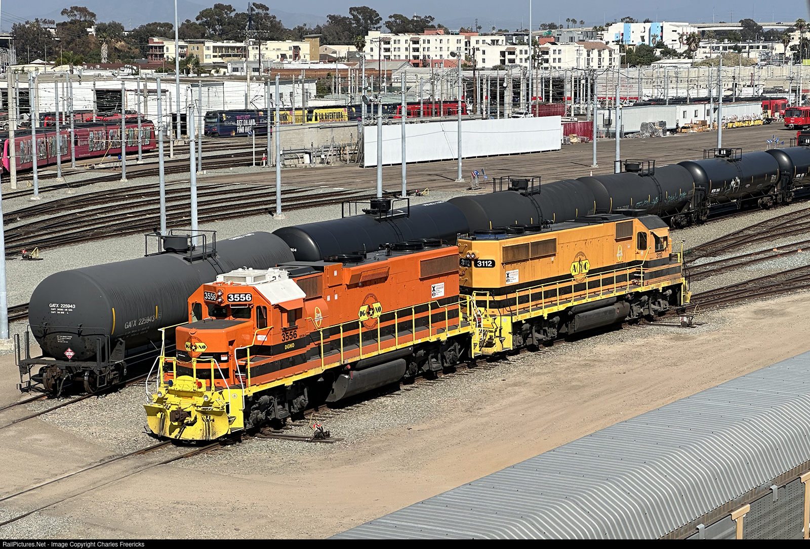 GW orange company power sits in the San Diego Trolley Yard, awaiting the next San Diego and Imperial Valley run.
