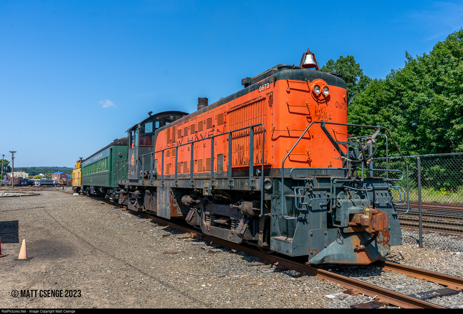 New York, New Haven & Hartford RS-1 no. 0673 (née Illinois Terminal no. 753; ALCO, 1948) is seen at the Danbury Railway Museum operating the day's train rides. 0673 was never a NH locomotive; the last NH RS-1 was numbered 0671, and 0672 was already created by the Cape Cod Railroad.