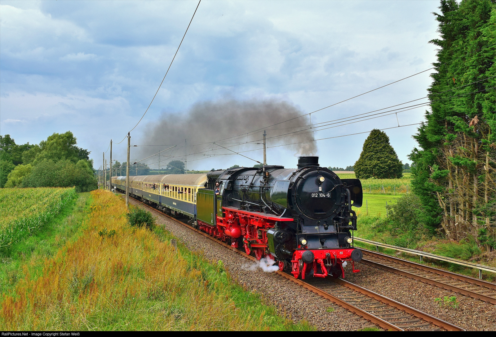 | With a special train from Neumünster to the Hanse Sail in Rostock, 012 104 is on its way near Ventschow at noon. |