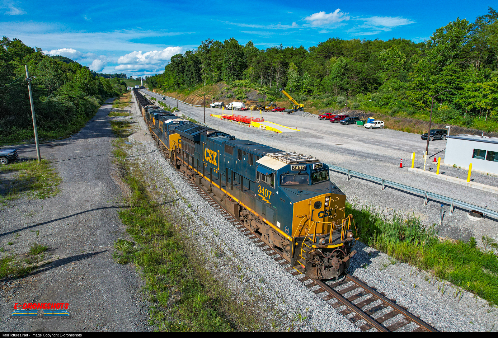 RailPictures.Net Photo: CSXT 3407 CSX Transportation (CSXT) GE ES44AH at Volga, West Virginia by E-droneshots