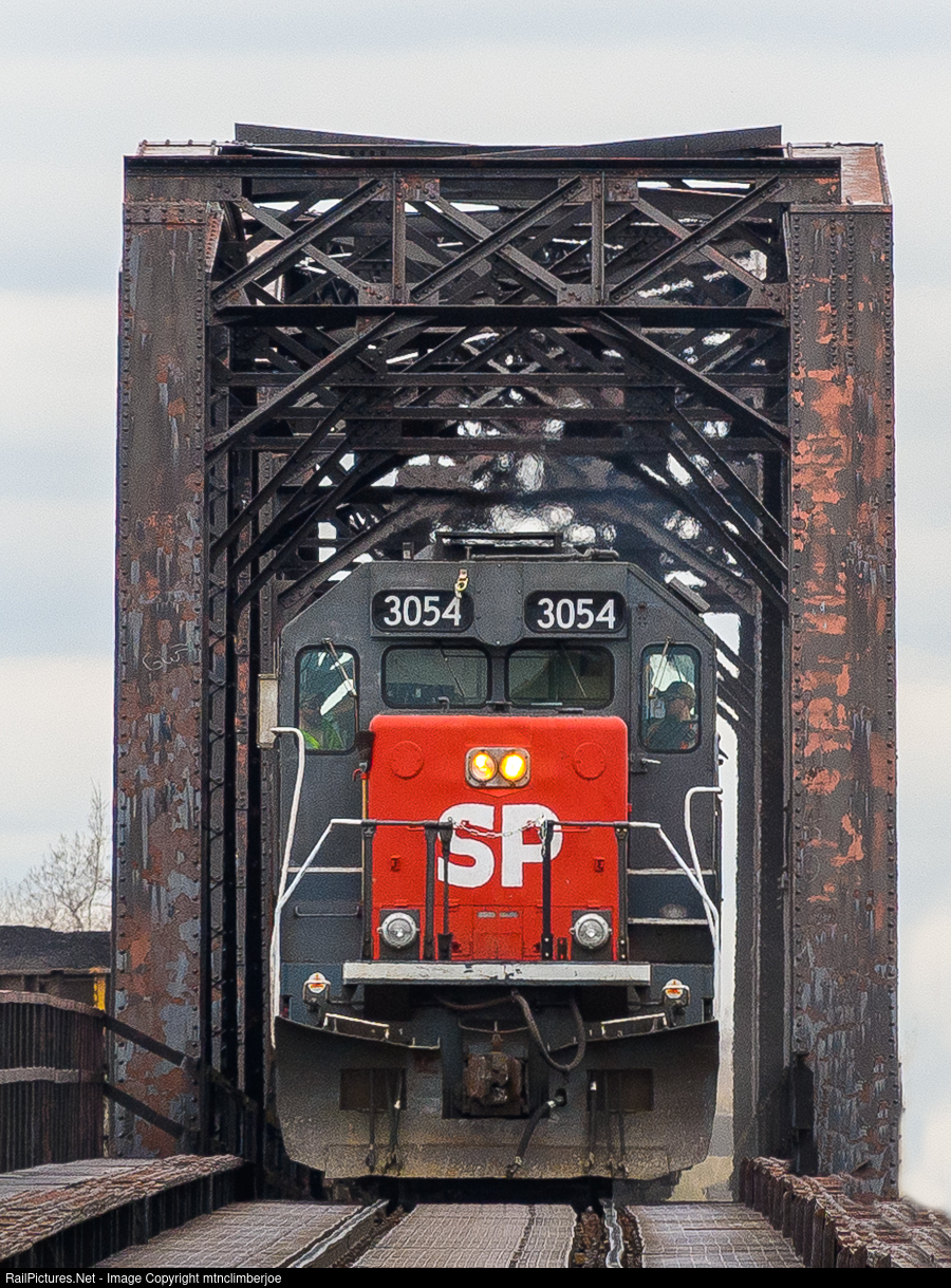 | A former Southern Pacific SD45 tunnel motor leads a Buffalo & Pittsburgh coal train as it crosses the South Buffalo Railroad's bridge to head towards the port in Buffalo, New York. This bridge crosses over the rail lines of Norfolk Southern, Buffalo Southern, and two CSX lines just south of the Tifft Street bridge. |