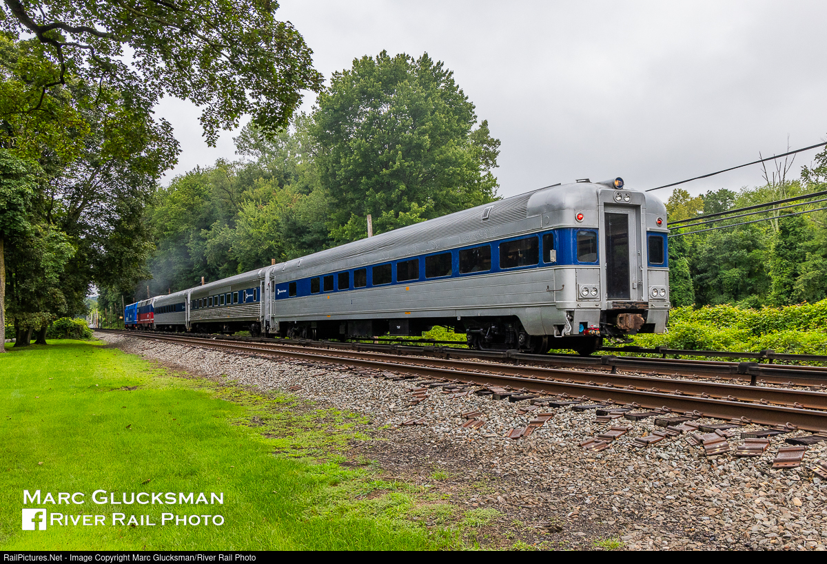 Windows On The Harlem. On Wednesday, August 16, 2023, MTA Metro-North Railroad operated an Inspection Train with recently wrapped heritage units MNCW 201 (Conrail/MTA) and 208 ("Beachball") and its 3 office cars. The cars are in fact old, one former New York Central and the other two former Lackawanna Railroad. The locomotives are contemporary models, but "wrapped" in the paint scheme of predecessor railroads. The train headed up the Harlem Line to Wassaic, where the locomotives ran around the cars for the return trip to Grand Central Terminal, giving railroad executives and management the opportunity to inspect many ongoing, completed, and needed improvements on the line. The rear view of the Inspection Train shows the rear facing windows of the former Lackawanna Phoebe Snow observation car.