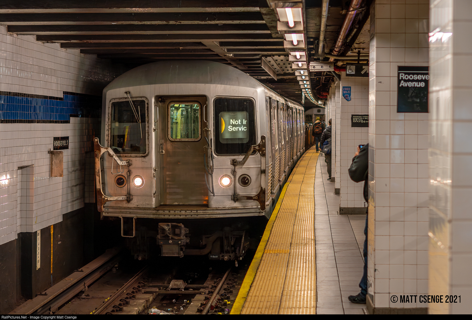Work Service. A set of R42 cars (St. Louis Car Co., 1969-1970) leads a New York City Transit Authority (NYCTA) refuse train that has stopped momentarily on the Manhattan-bound local track at Jackson Heights-Roosevelt Ave station on the IND Queens Blvd Line. These cars would not have been seen in revenue service in over a decade, as the few that were not retired by then were transferred to the J/Z in 2009 to live out the rest of their lives.
