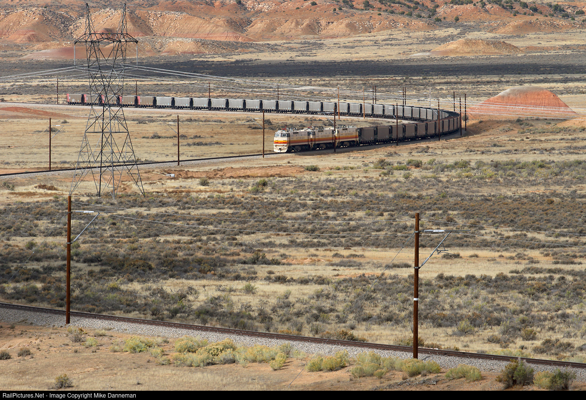 Deseret Power Railway’s unit coal empties slithers through the curves rolling through Coyote Basin at milepost 24 east of Bonanza, Utah, on October 20, 2015.