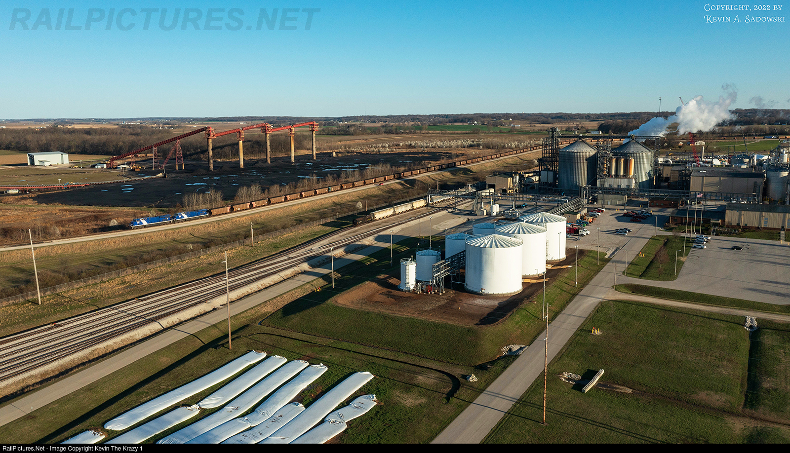 Savatrans coal from Sugar Camp Mine running as EVWR train SS1 arrives at the transload facility along the Ohio River at West Franklin, IN.