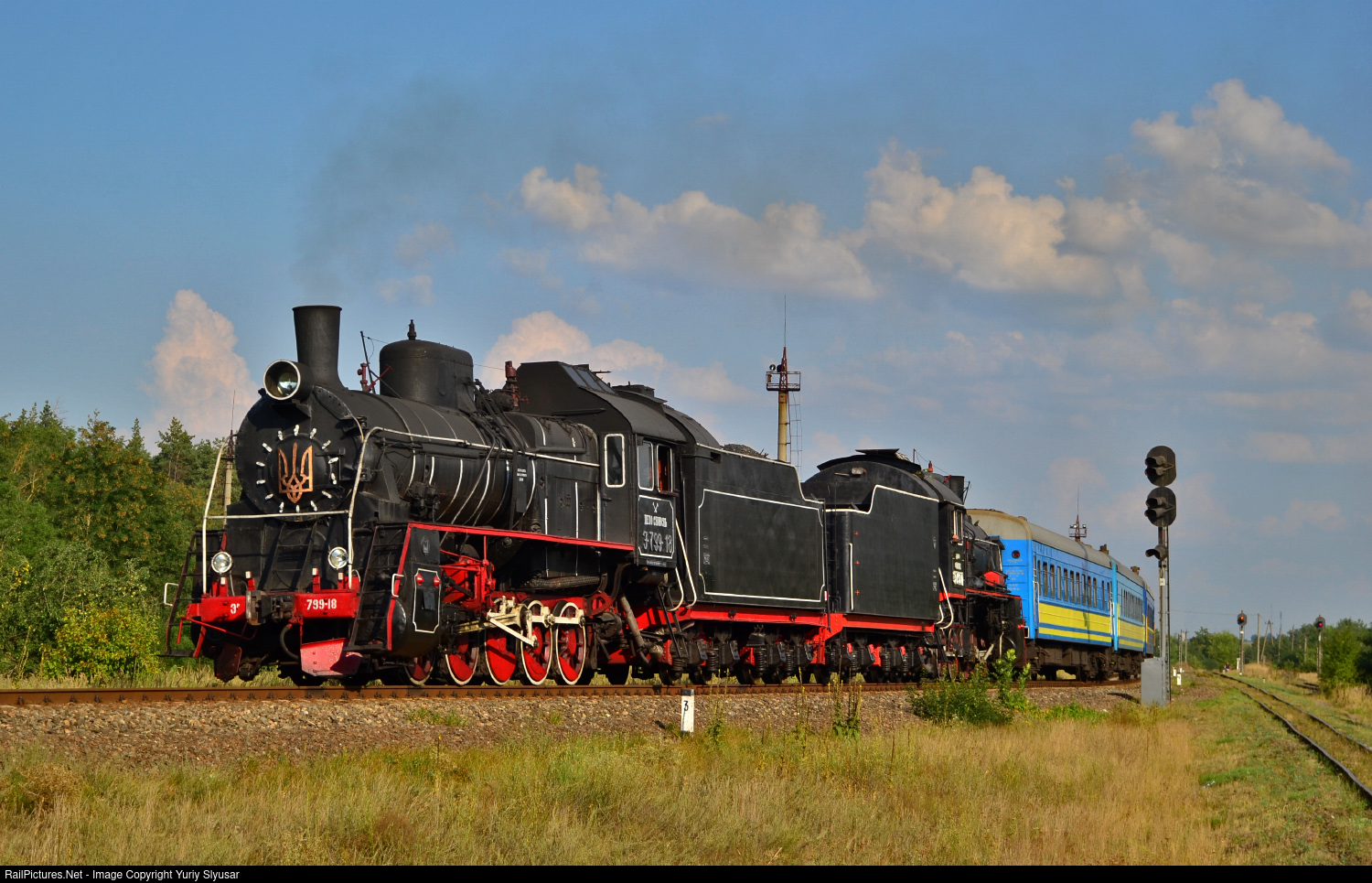 The steam locomotives Er799-18 and Er798-71 with a tourist train #827 Haivoron - Dzhulynka during the festival "Hai Hude" of the retro railway equipment