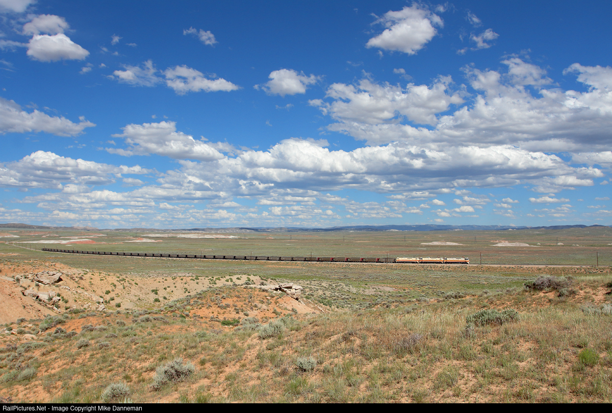 Deseret Power Railway’s afternoon coal train is climbing out of Coyote Basin between milepost 26 and 27 east of Bonanza, Utah, on a beautiful June 21, 2023.