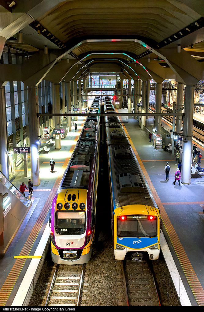 VLocity set 3VL106 and a Metro Siemens set at Southern Cross Station.
