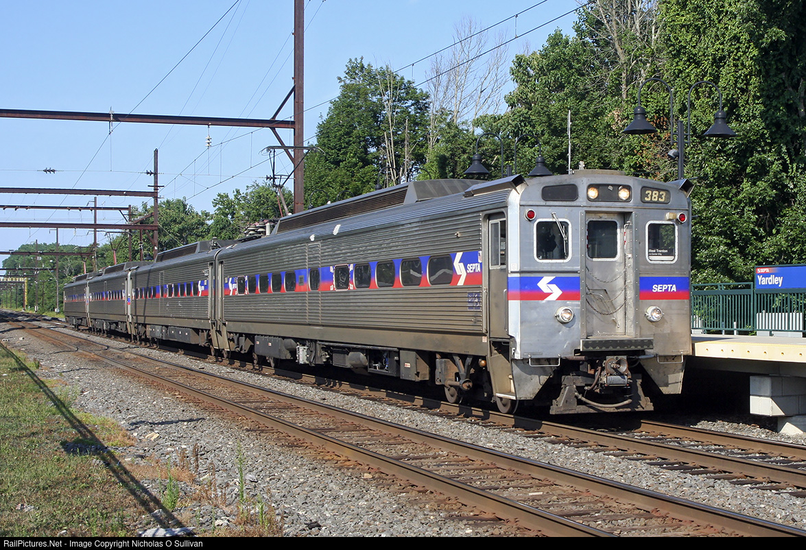 A weekend westbound train from Chestnut Hill West, PA and Philadelphia, PA arrives at its penultimate stop on its way to West Trenton, NJ. Since 2015, SEPTA (passenger) and CSX (freight) have had separate dedicated tracks on the West Trenton Line, each for bi-directional service. Prior to then, both railroads had shared the usage of the 2 tracks.