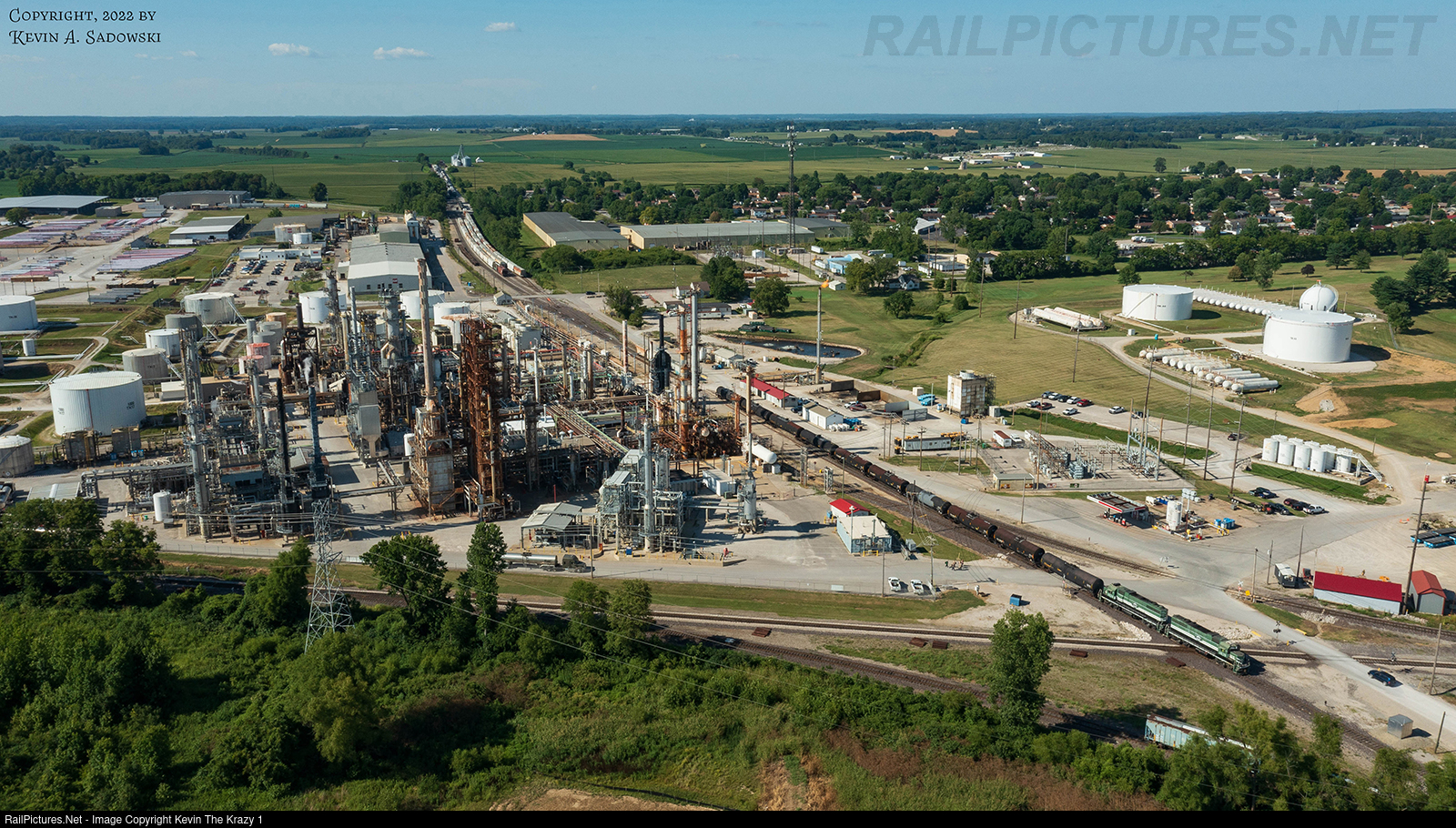 The Mt Vernon yard job crosses the former L&N main line to St Louis with a cut of tank cars for the connection track.